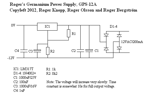Roger's Germanium Slow Start Power Supply Schematic